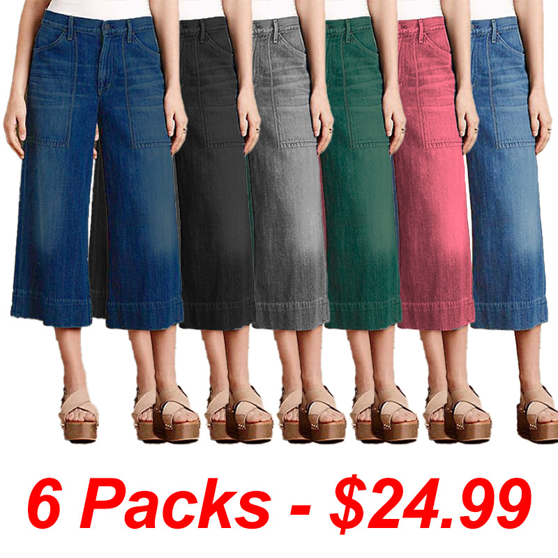 Double Button Drawstring Capris Jeans - 6 Multicolor Sets?