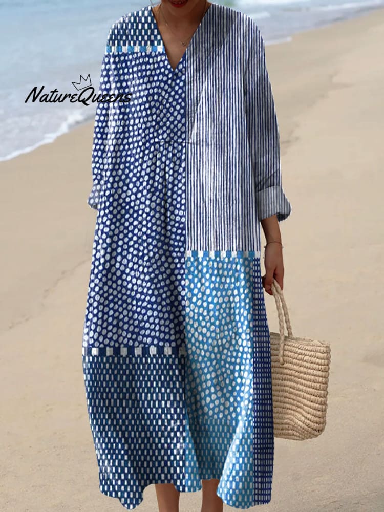 Women's Vintage Dot Art Print Casual Linen V-neck Shirt