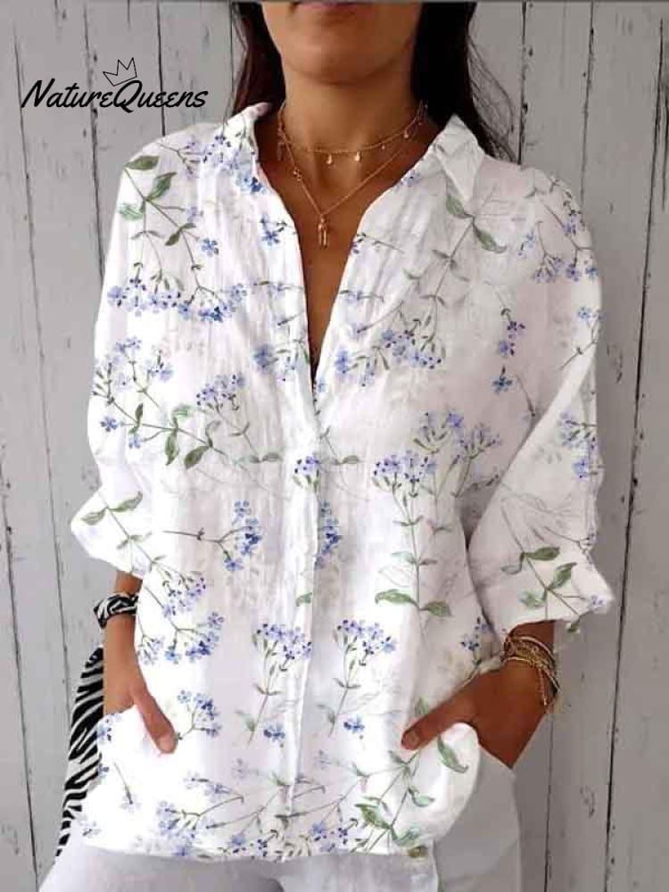 Women's Vintage Botanical Floral Print Casual Cotton And Linen Shirt