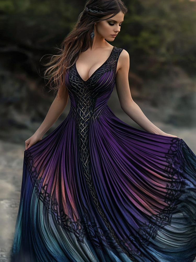 Vintage Viking Pattern Gradient Casual Tank Dress