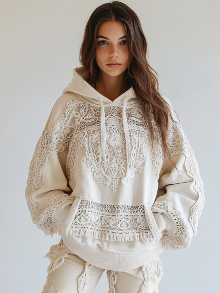 Women's Vintage Bohemian Floral Panel Cozy Warm Hoodie