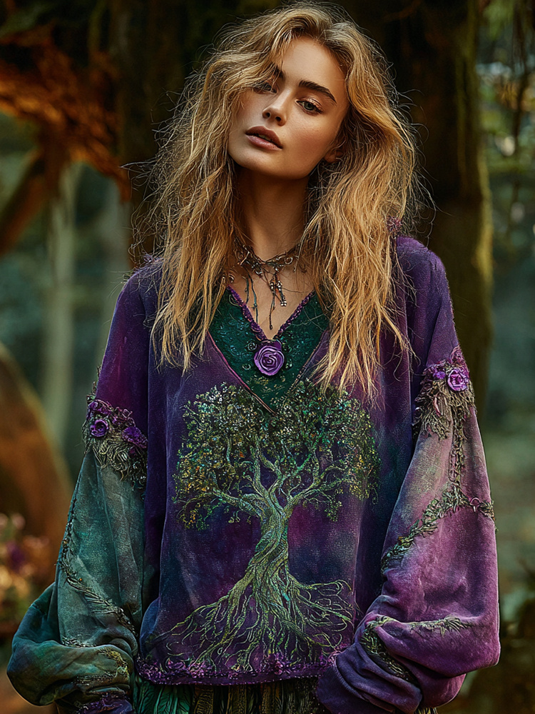 Vintage Tree Of Life Gradient Art Women's Cozy Warm Sweatshirt