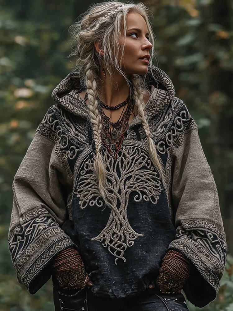 Women's Viking Tree Of Life Celtic Knot Art Cozy Color Block Bohemian Hoodie