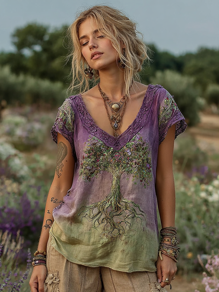 Vintage Tree Of Life Purple Floral Hot Diamond Gradient Color T-shirt