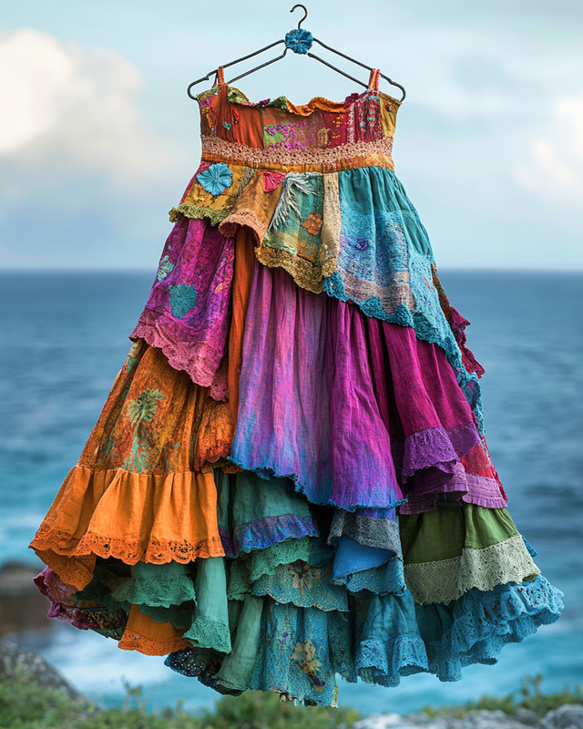 Summer colorful vacation patchwork contrast dress ce2e
