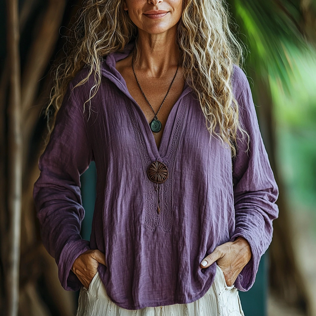 Women's Linen Solid Color Simple Long-sleeved Casual Shirt