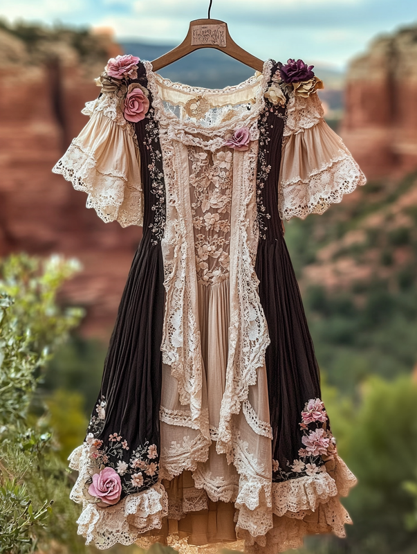 Vintage Floral Embroidered Lace Patchwork Dress b034