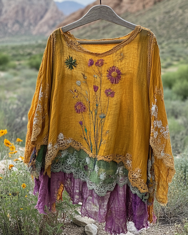 Summer Vintage Floral Lace Patchwork Top 8824