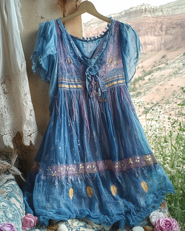 Summer Retro Western Tassel Embroidered Dress 685d