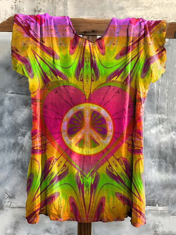 Vintage Summer Print Ruffle Sleeve Shirt d44c