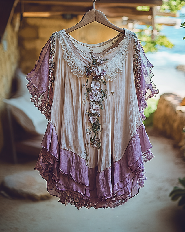 Summer Vacation Ruffle Lace Patchwork Top ffaa