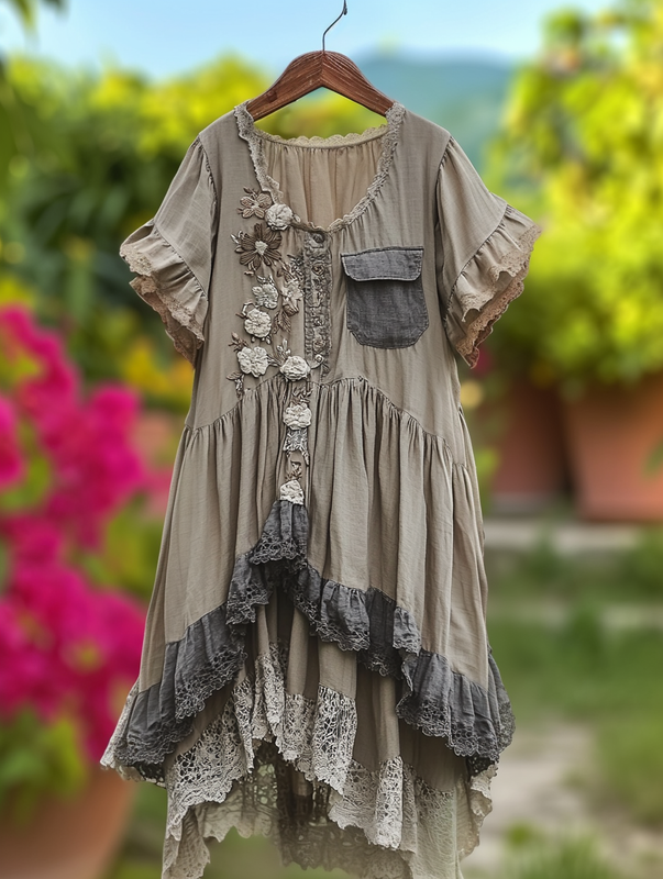 Summer Vintage Irregular Lace Patchwork Ruffle Dress a8df