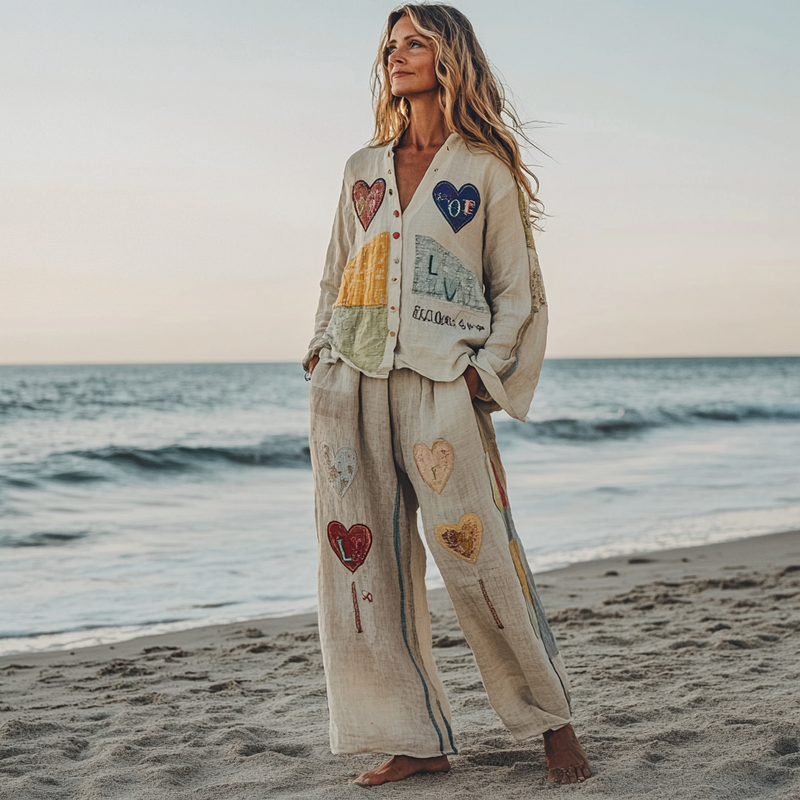 Comfort Vacation Oversized Linen Long Sleeve Shirt and Wide Leg Pants c30c