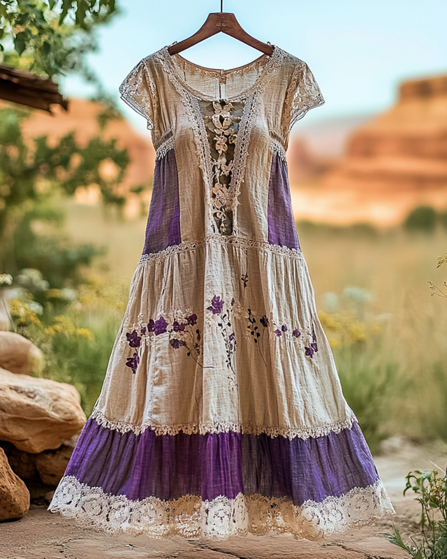 Summer Vintage Floral Lace Patchwork Dress 70cc