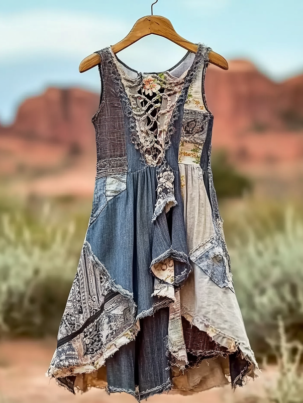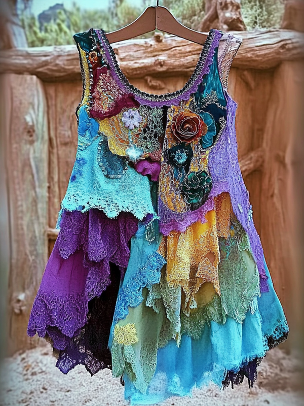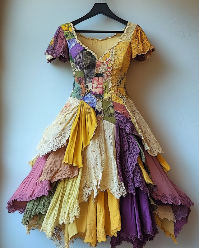 Summer Vintage Irregular Lace Patchwork Dress 68ae