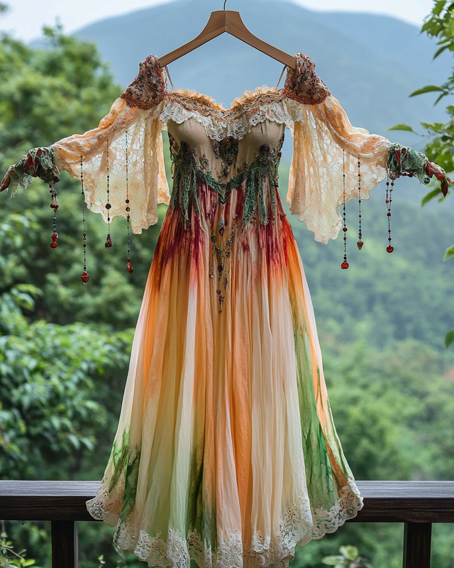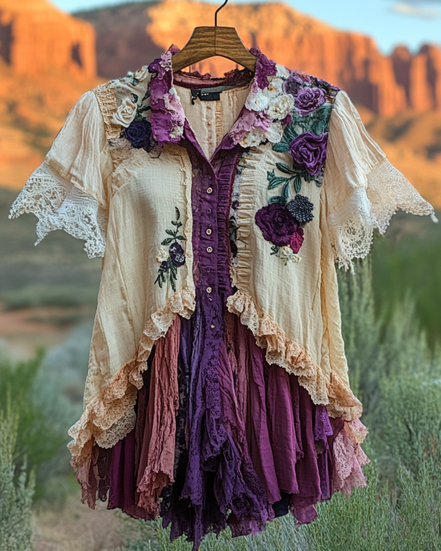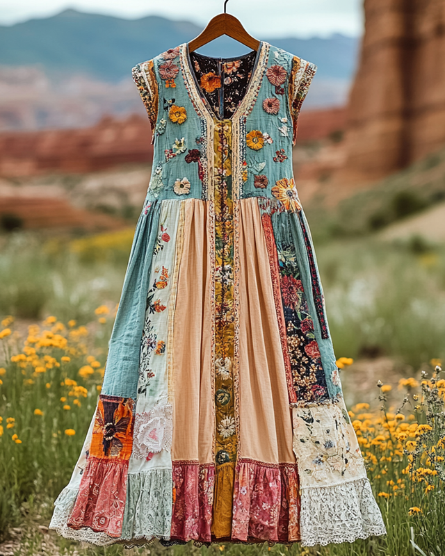 Vintage Floral Embroidered Lace Patchwork Dress 72a4