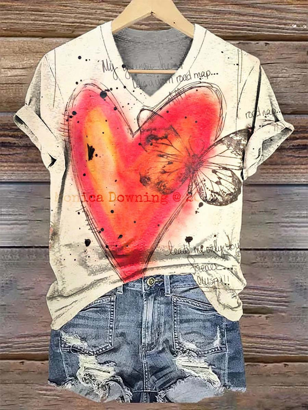 Vintage Floral Lace Art Comfy V Neck T Shirt 987f