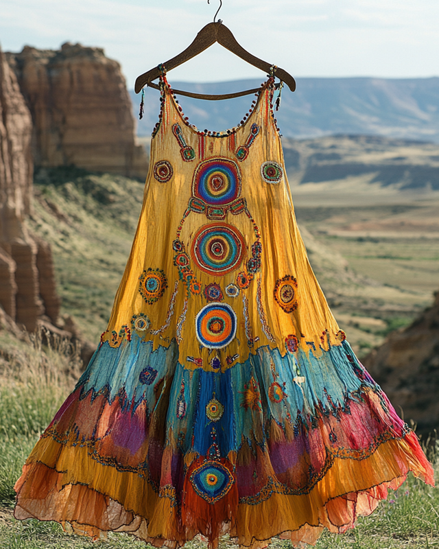 Women's Vintage Tie-dye Floral Sleeveless Dress 2e7c