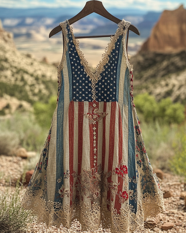 Summer Vintage Independence Day Lace Patchwork Top f4d0