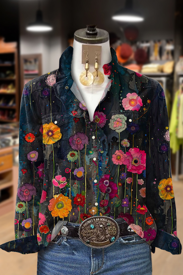 Tranquil Bloom Minimalist Linen-Cotton Shirt