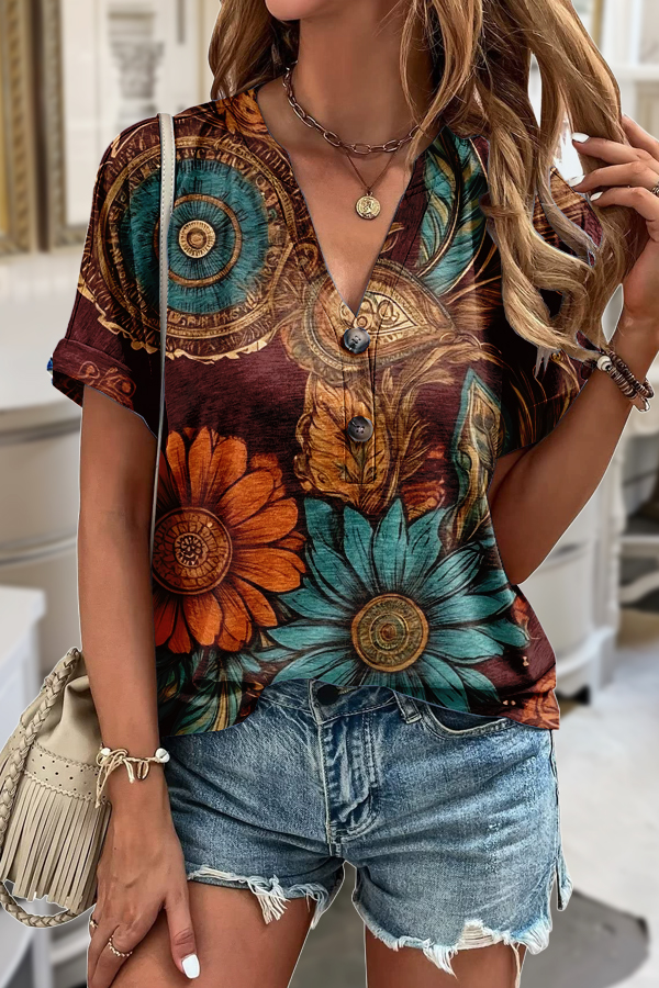 Vintage Floral Print Short Sleeve Sweatshirt