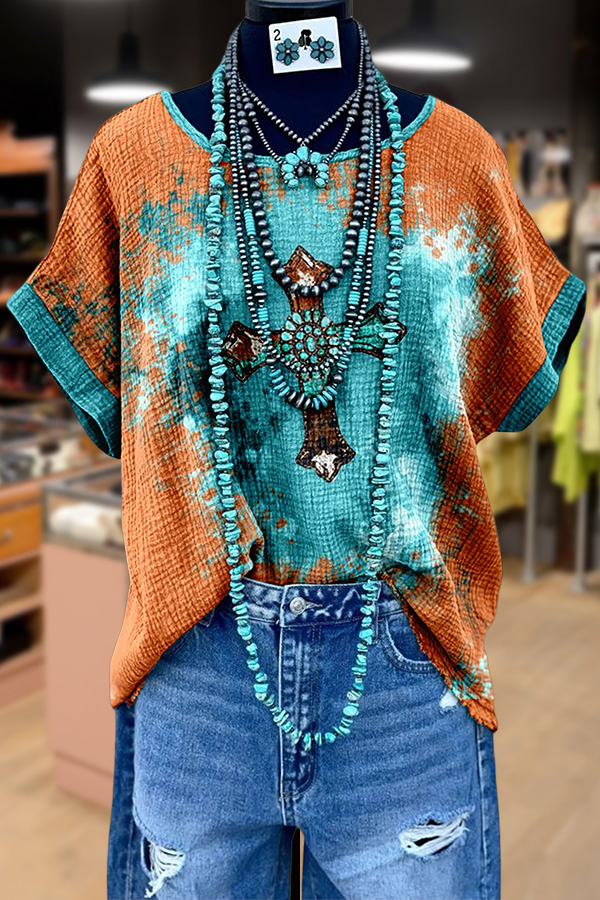 Summer colorful vacation patchwork contrast top aca6