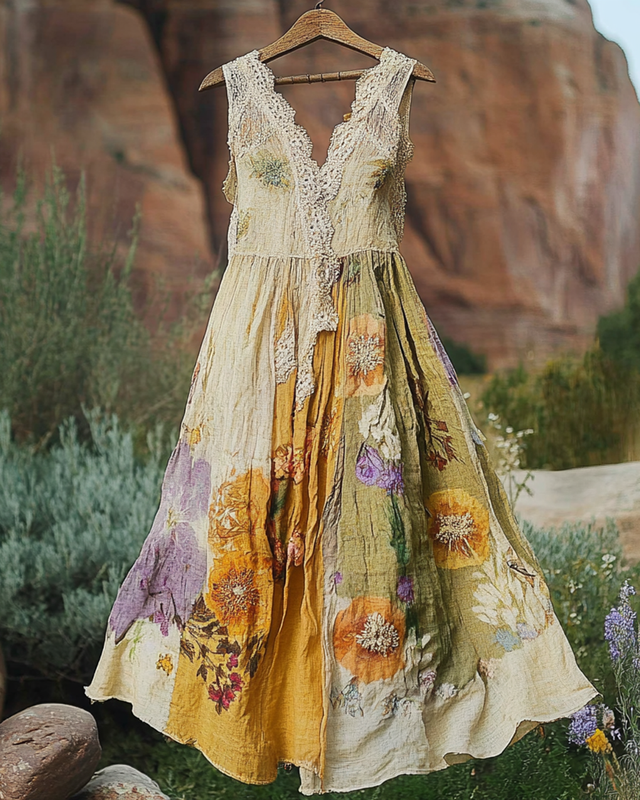 Summer Vintage Floral Lace Patchwork Dress 1841