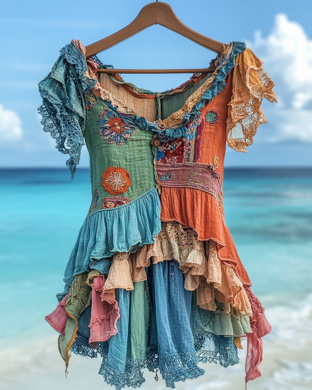Summer Vacation Ruffle Lace Patchwork Top 8aa9