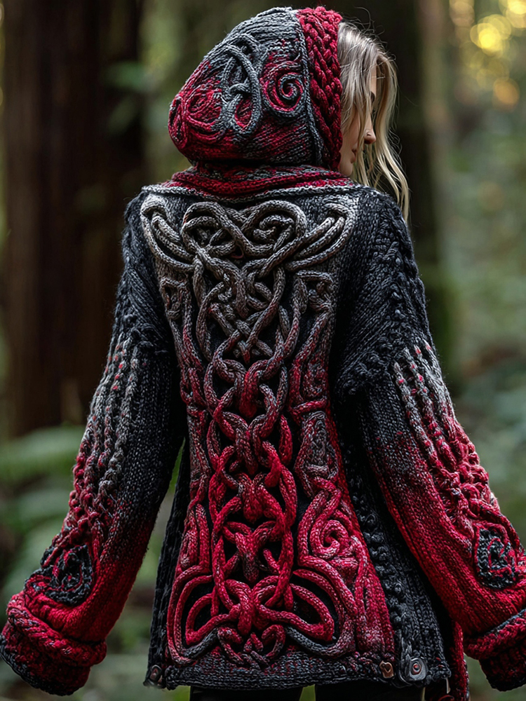Men's Vintage Skull Celtic Chunky Cozy Hooded Cardigan