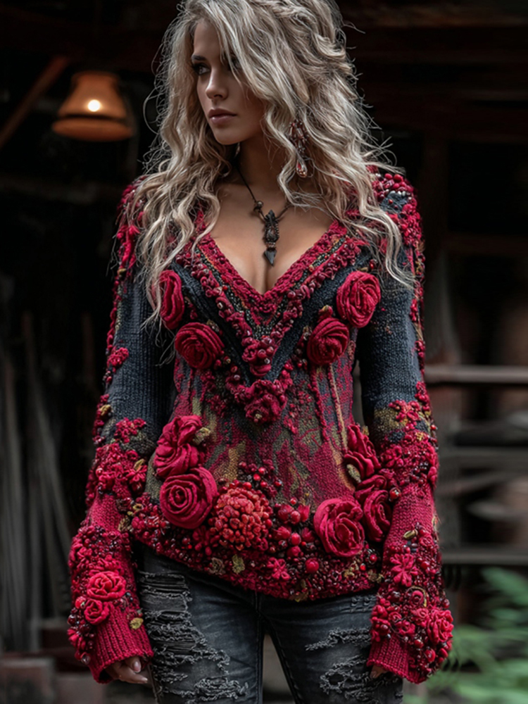 Women's Vintage Viking Tribal Rose Gradient Art Cozy Sweater