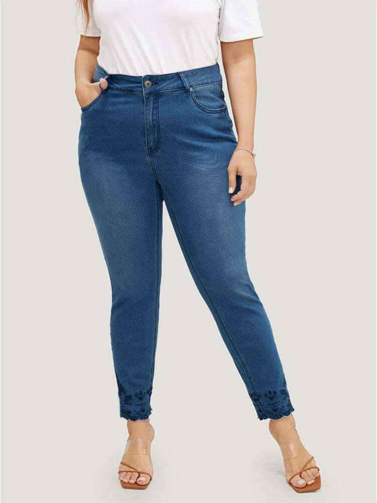 Very Stretchy High Rise Medium Wash Broderie Anglaise Jeans