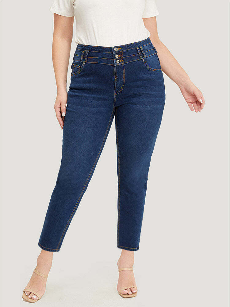 Very Stretchy High Rise Dark Wash Contrast Stitching Jeans