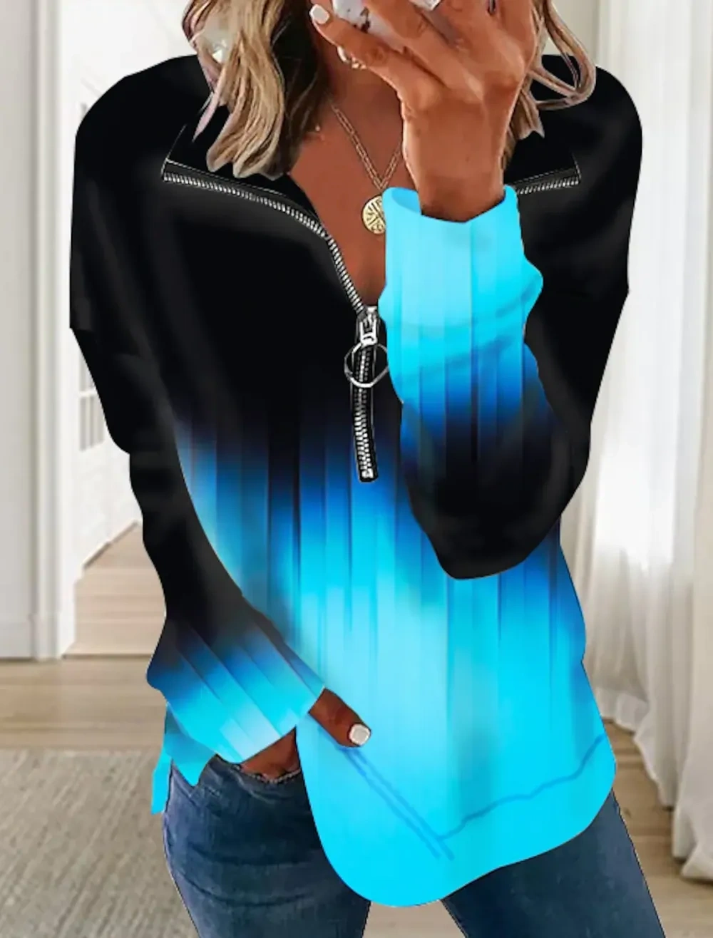 Women's Sweatshirt Pullover Basic Zipper White Red Blue Plaid Color Block Street V Neck Long Sleeve