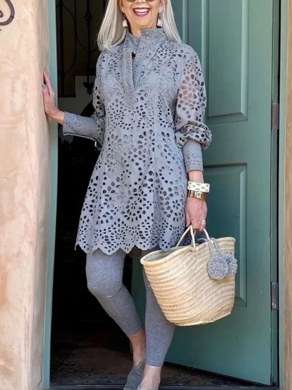 Women Solid Color Long Sleeve Irregular Single-breasted Cotton Linen Shirt Blouse