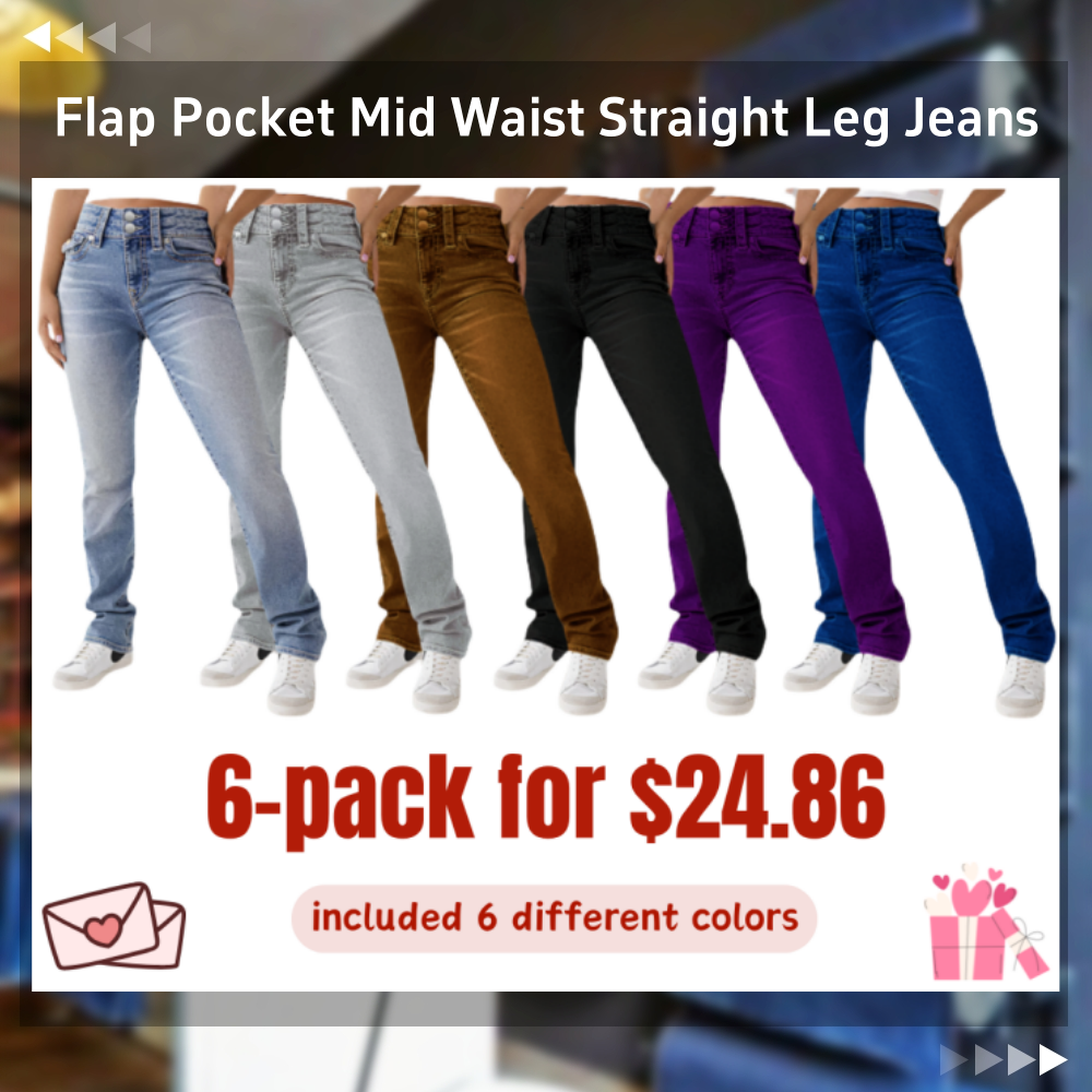 Final Sale!!⚡6 Packs for $24.86⚡ - Wash Double Button Flap Pocket Mid Waist Straight Leg Jeans