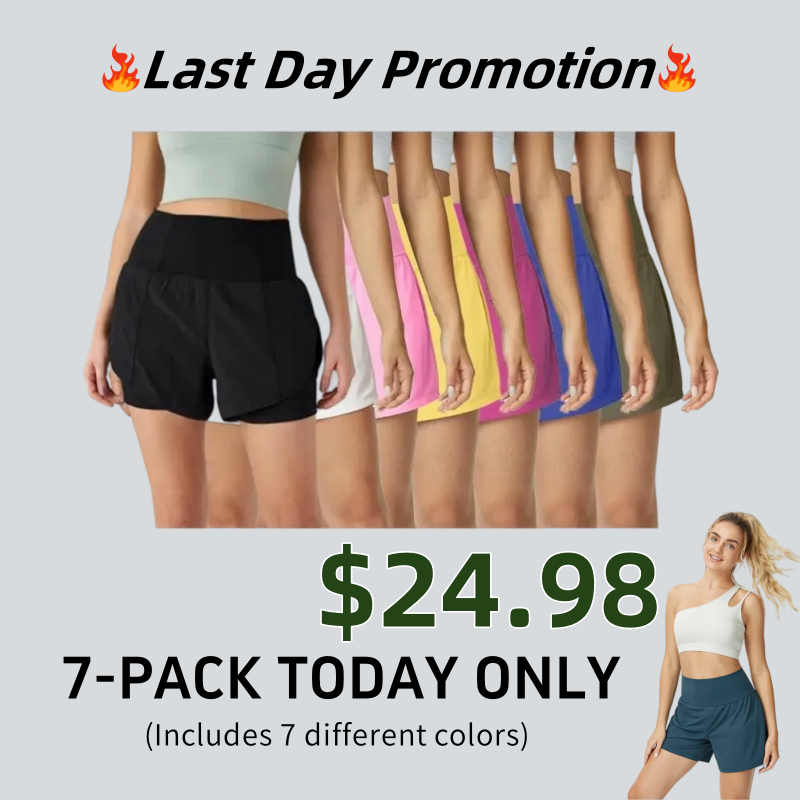 ⚡7 Packs for $24.98⚡Super High Waisted Back Pocket & Side Hidden Pocket 2-in-1 Yoga Shorts, 7/14 Color Sets