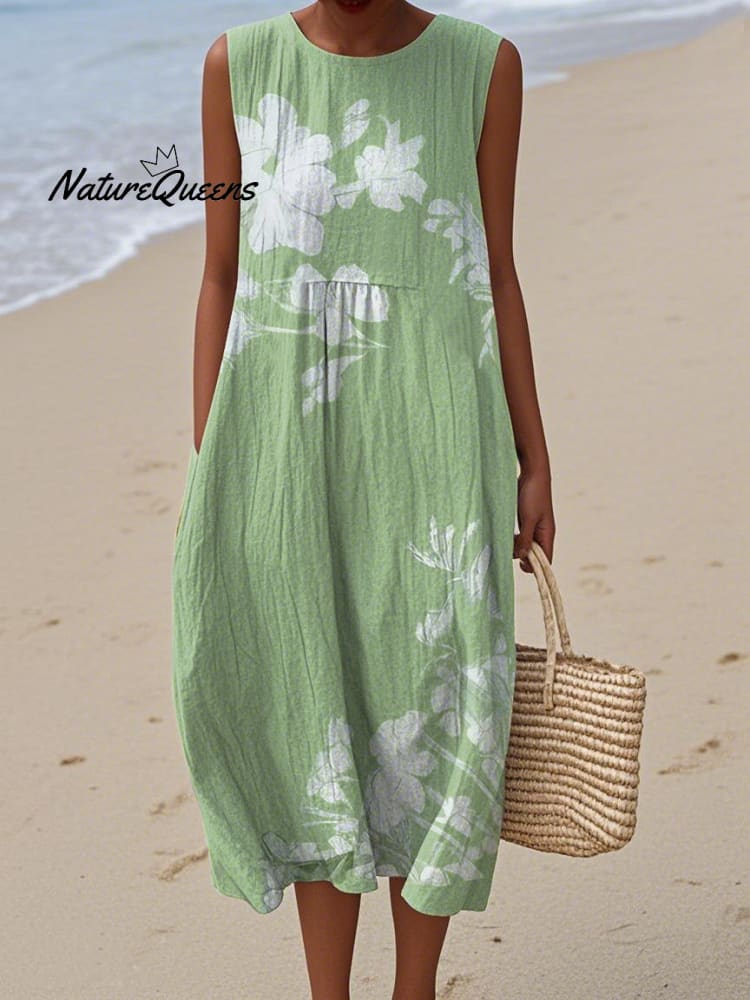 Women's Vintage Bohemian Floral Print Cotton and Linen Dress