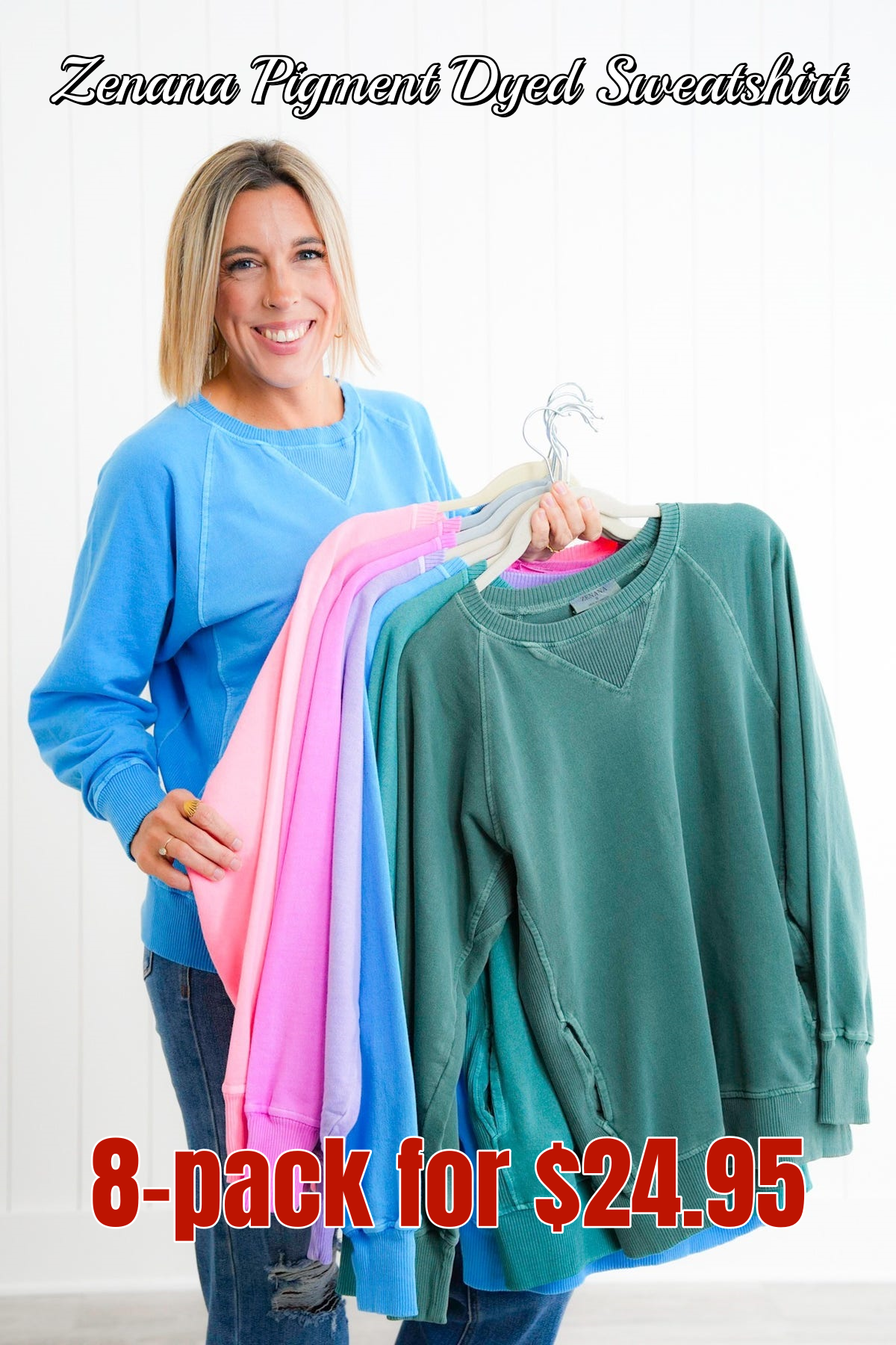 FINAL SALE⚡8 Packs for $24.95⚡ - Door Buster! Zenana Pigment Dyed French Terry Pullover w/ Pockets (Multiple Colors)