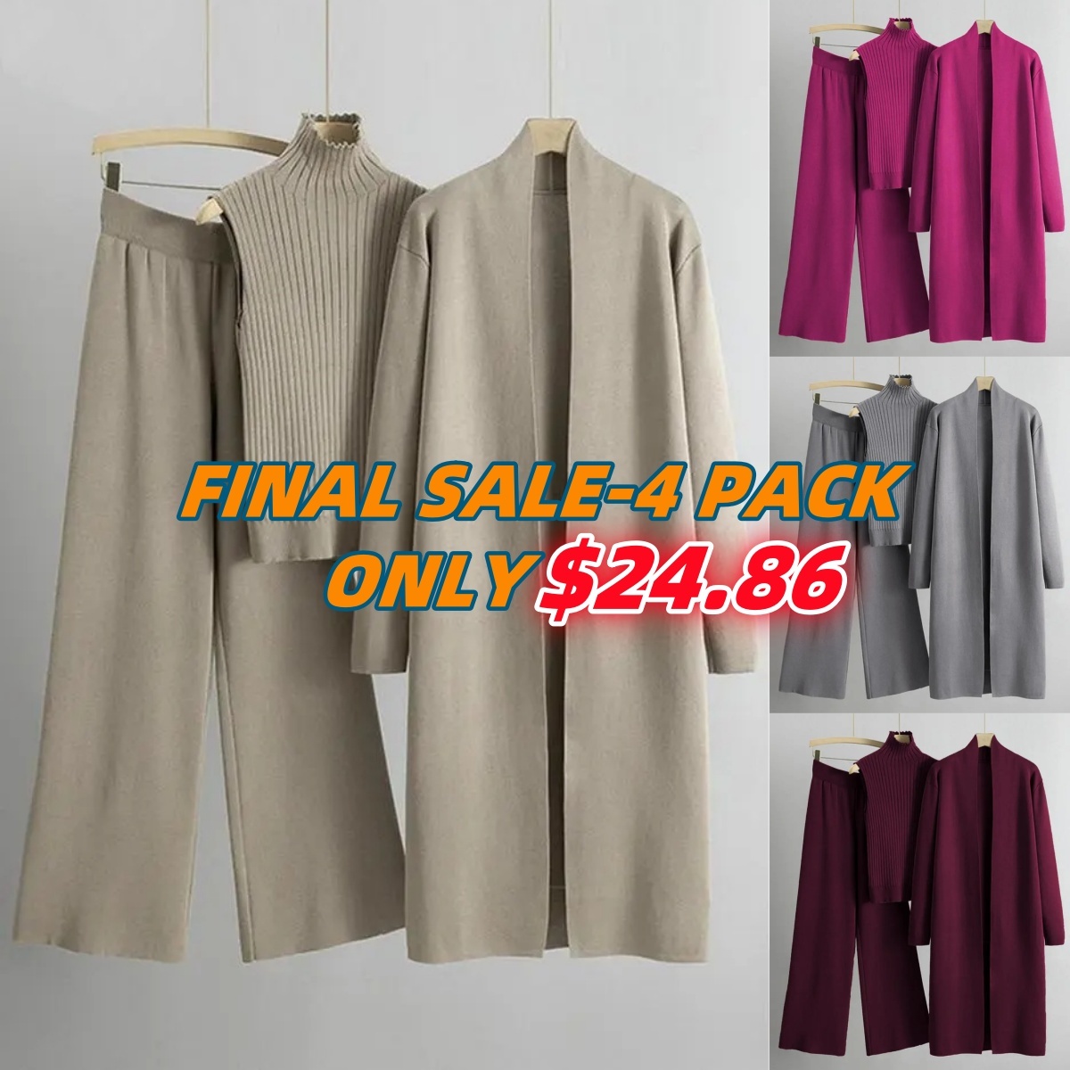 🔥FINAL SALE💥 Three-piece Set Women's Solid Tank Top & Wide Leg Pants & Open Front Cardigan Clothing Sets
