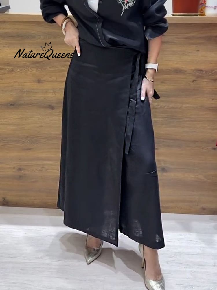 Women's Solid Color Casual Linen Lace-Up Wide Leg Pants