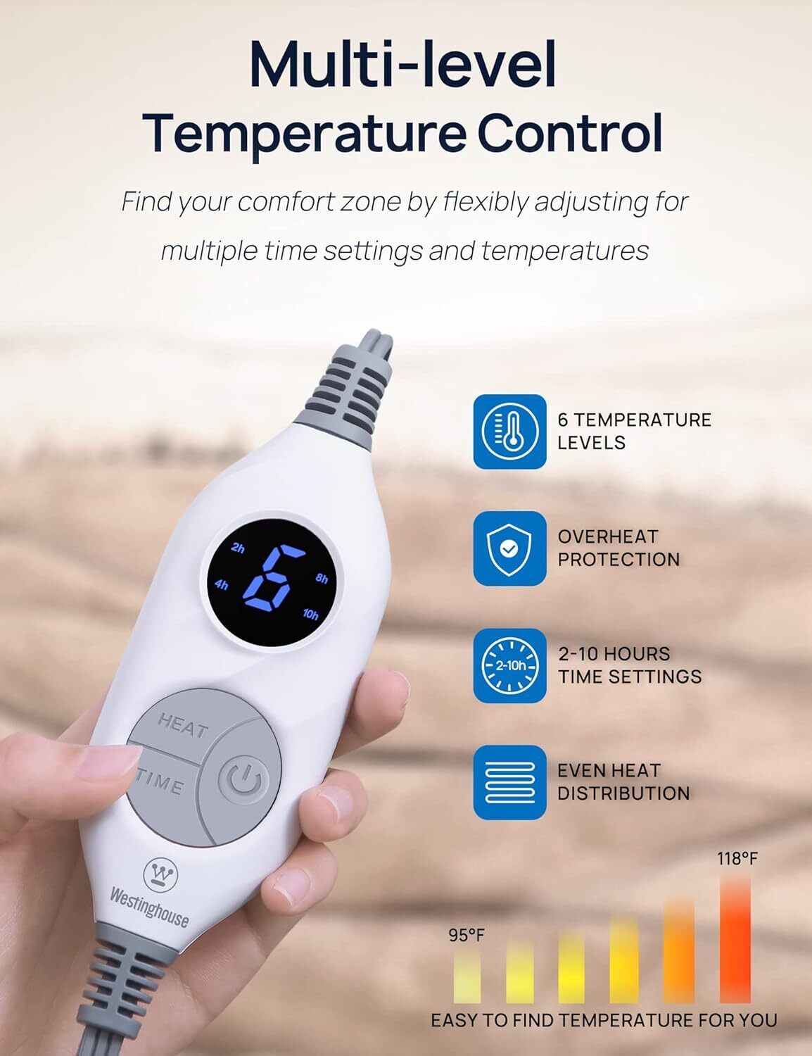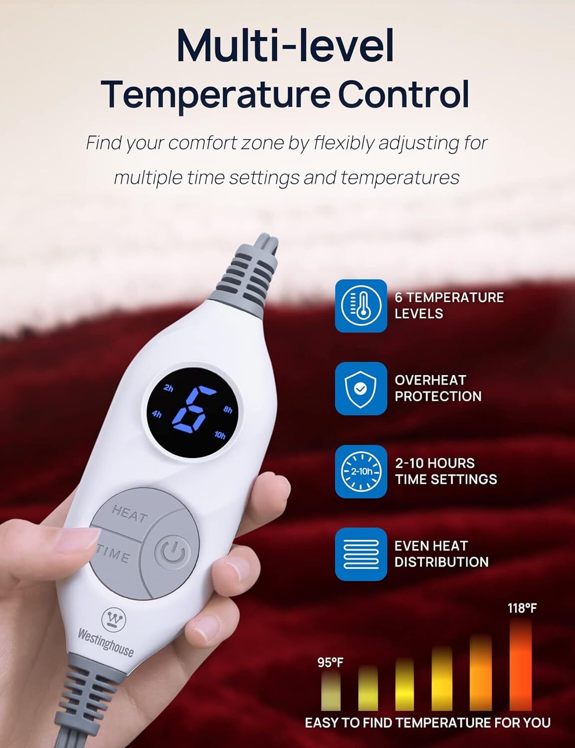 ETL & FCC certified for your peace of mind! Overheat protection and 2-10 hour time settings ensure safety and comfort. Make sure to read the instructions to avoid overheating from improper use.