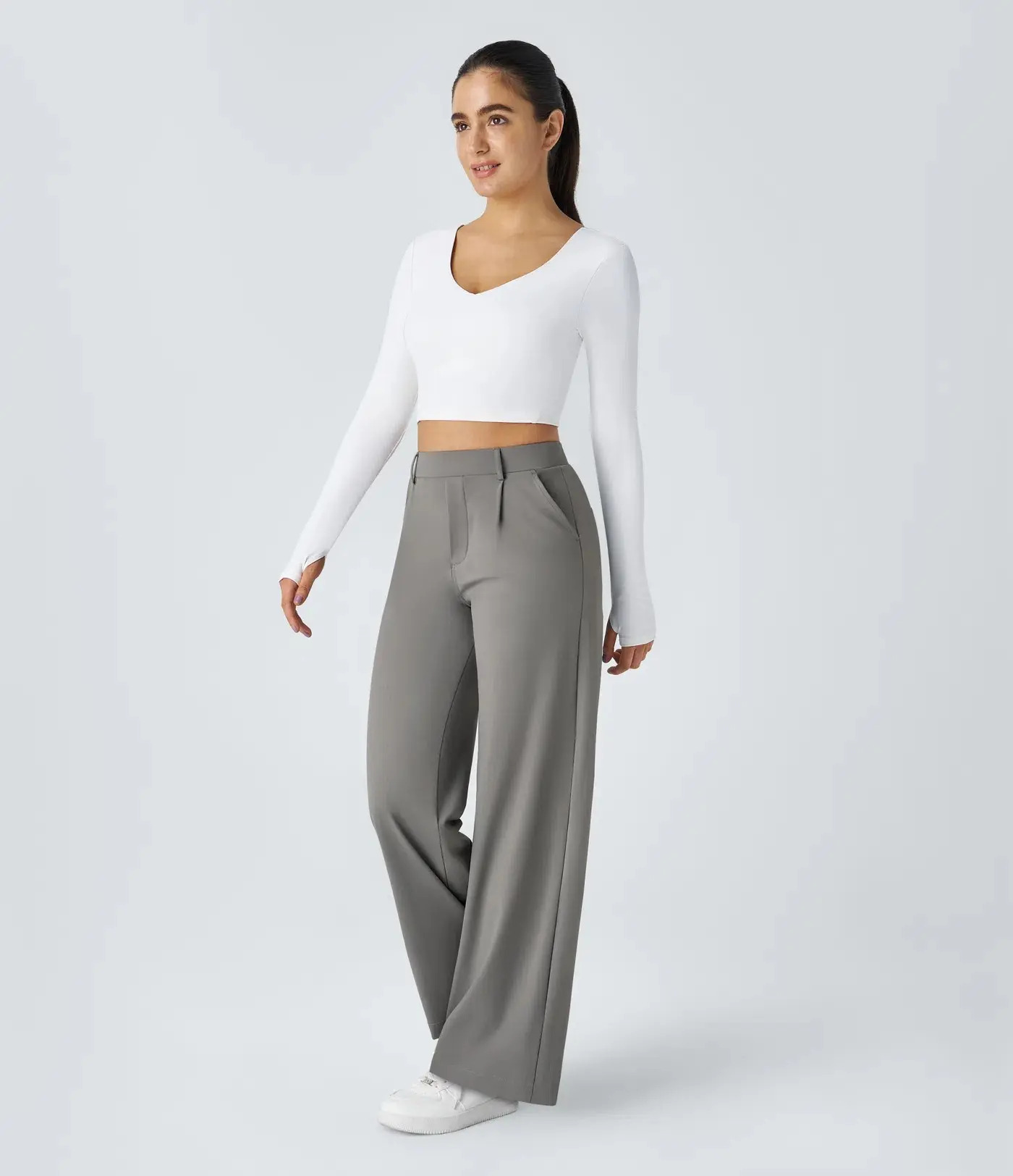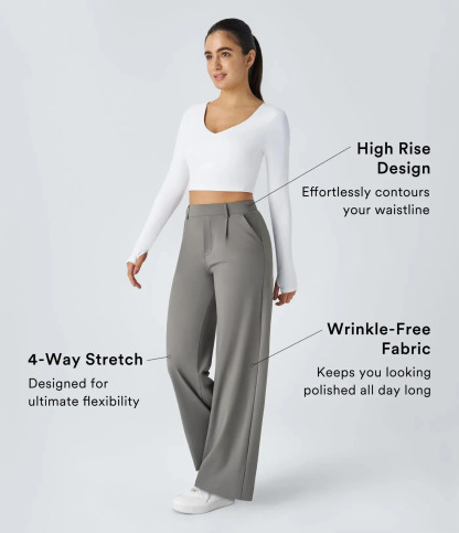 🔥Hot Sale🔥High-waisted Straight Leg Work Pants with Pockets