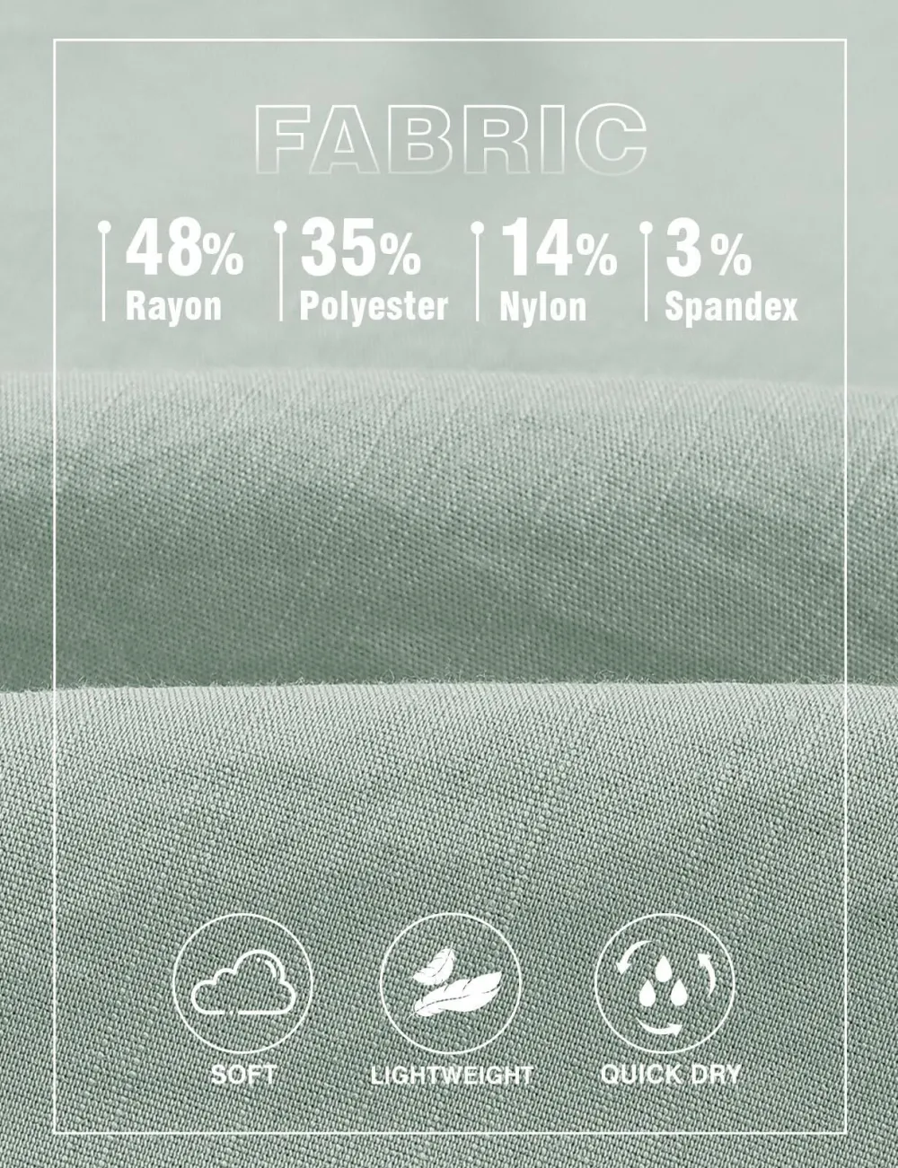 High-Quality Fabric:48% Rayon, 35% Polyester, 14% Nylon, 3% Spandex,Soft, lightweight and stretch fabric wicks moisture to keep your skin dry & comfortable for hot summer trip.
