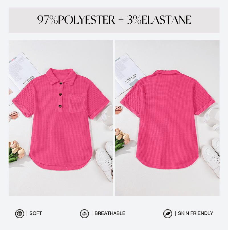 👗Elevate your wardrobe with our vintage-inspired waffle knit shirt. This comfy and cute fashion piece features a button-up design, perfect for women seeking versatile clothing. Ideal for pairing with jeans or leggings.