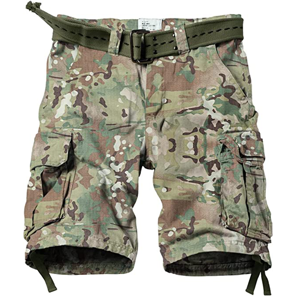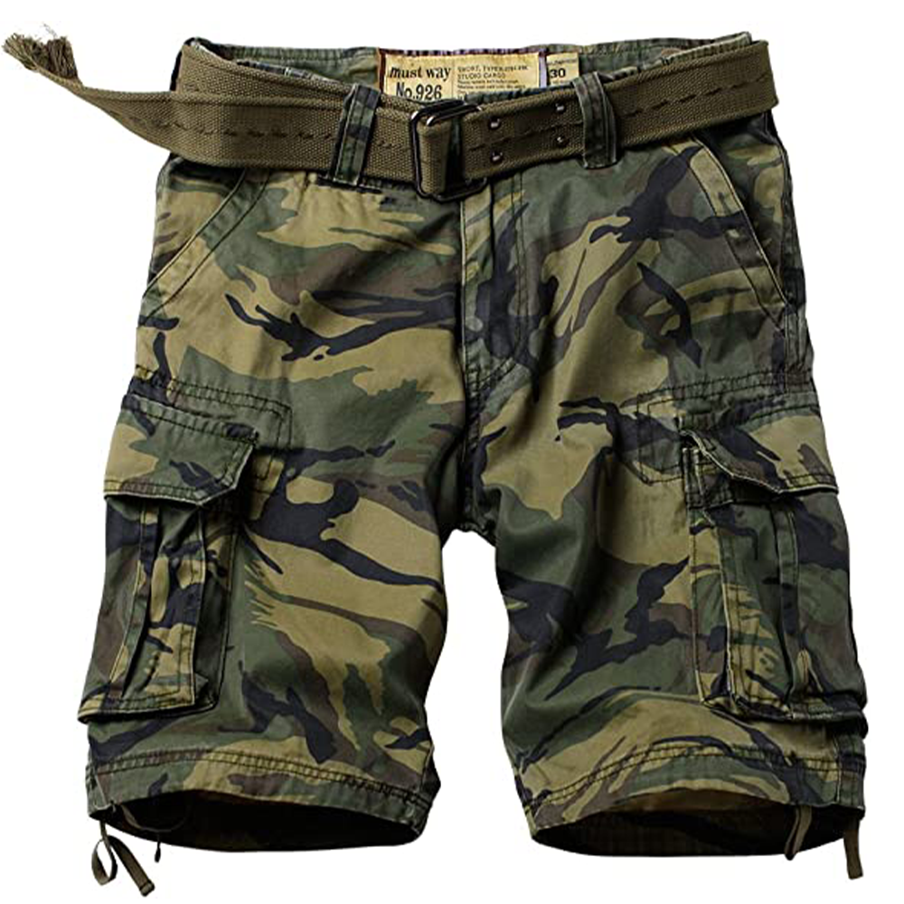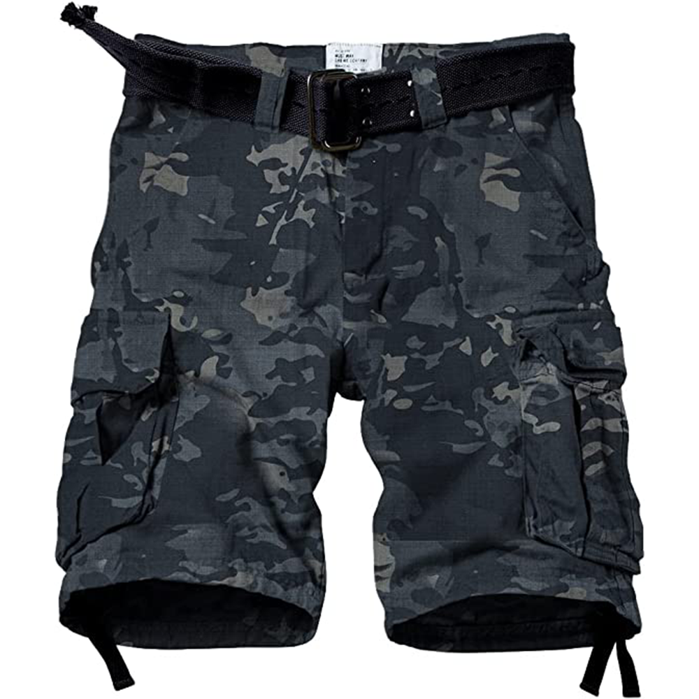 7-pack Men's Cargo Shorts Relaxed Fit Camo Short Outdoor Multi-Pocket Cotton Work Casual Shorts with Belt