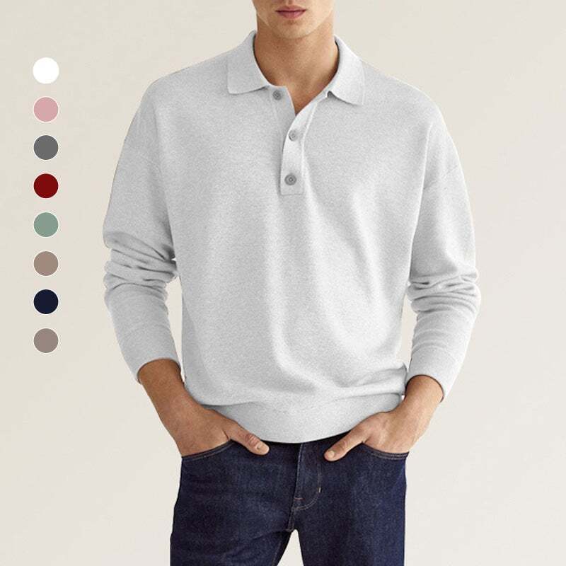 1* Men's Casual Loose Lapel Long Sleeve Polo Shirt