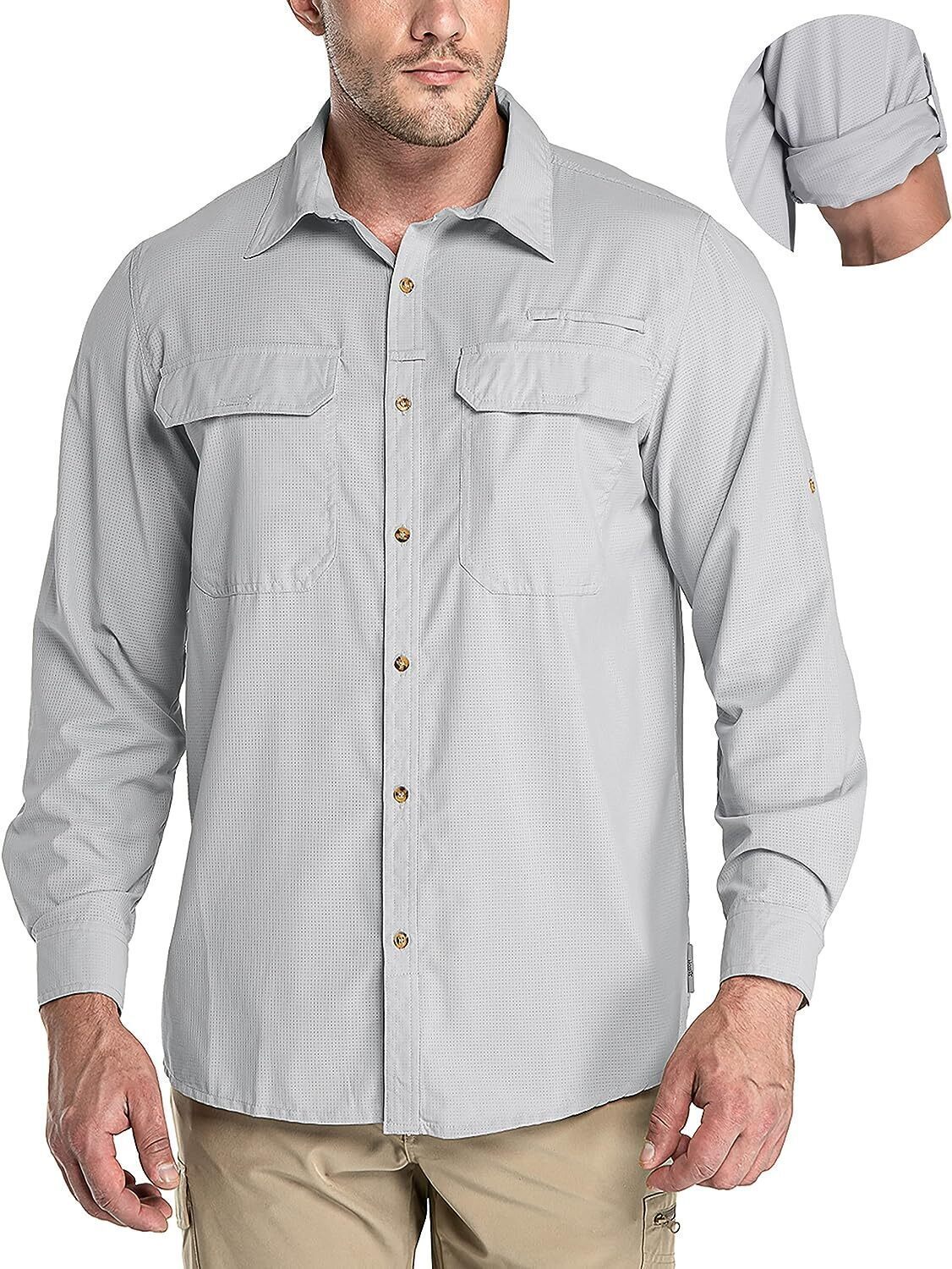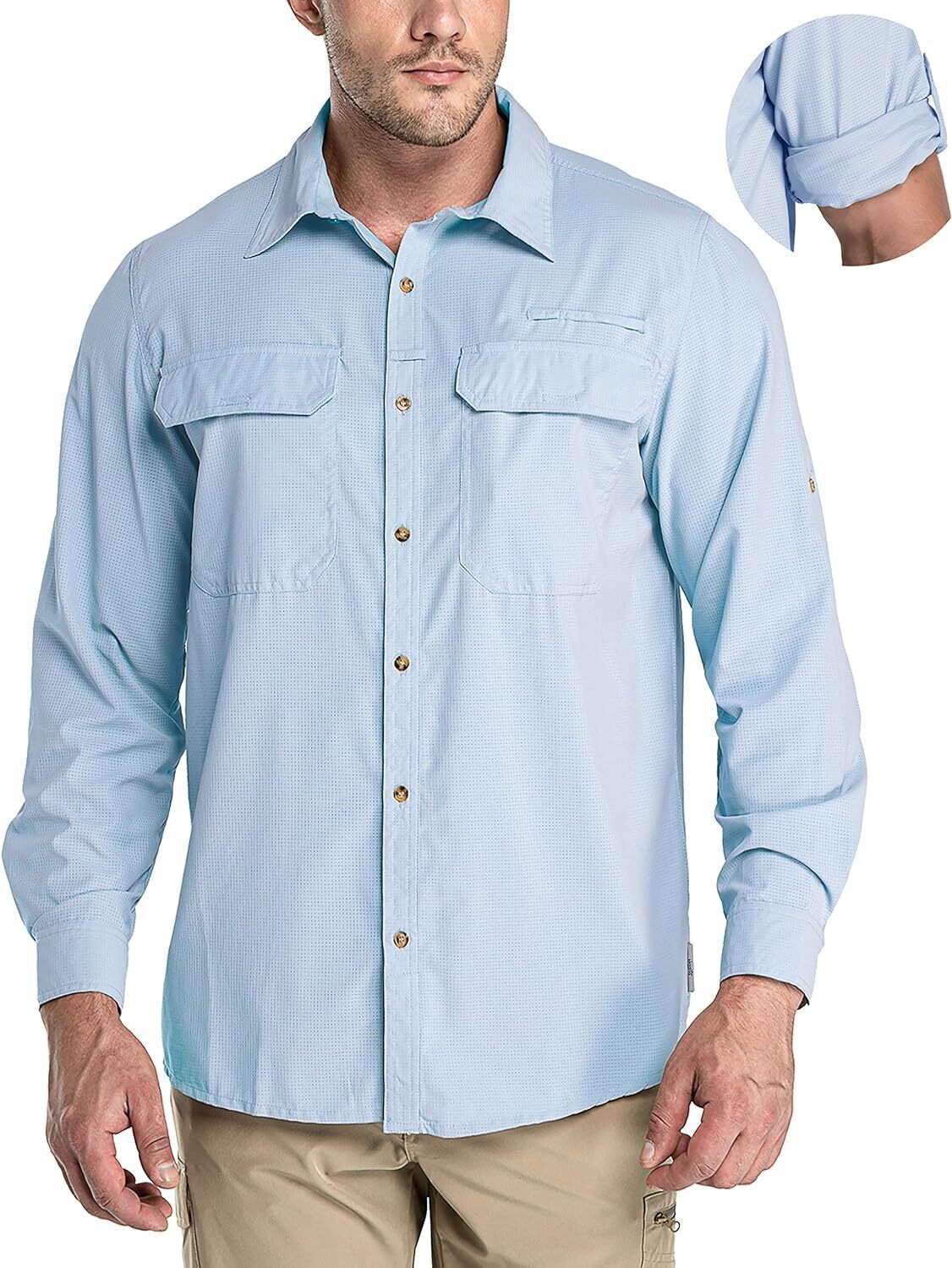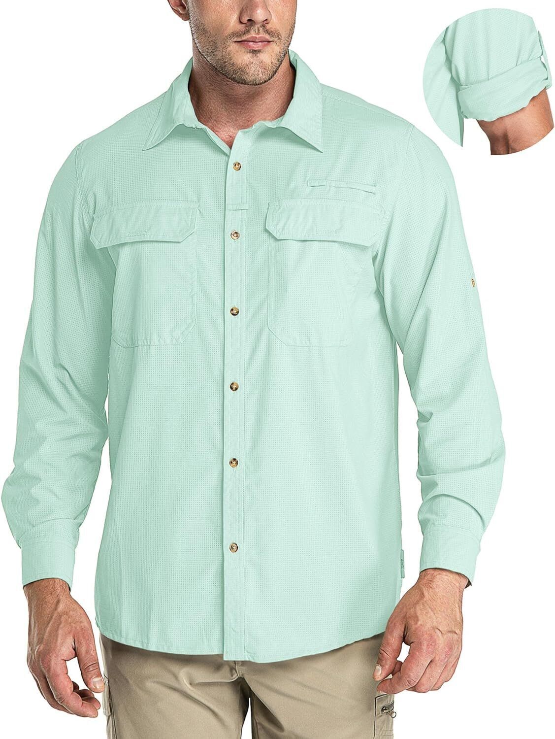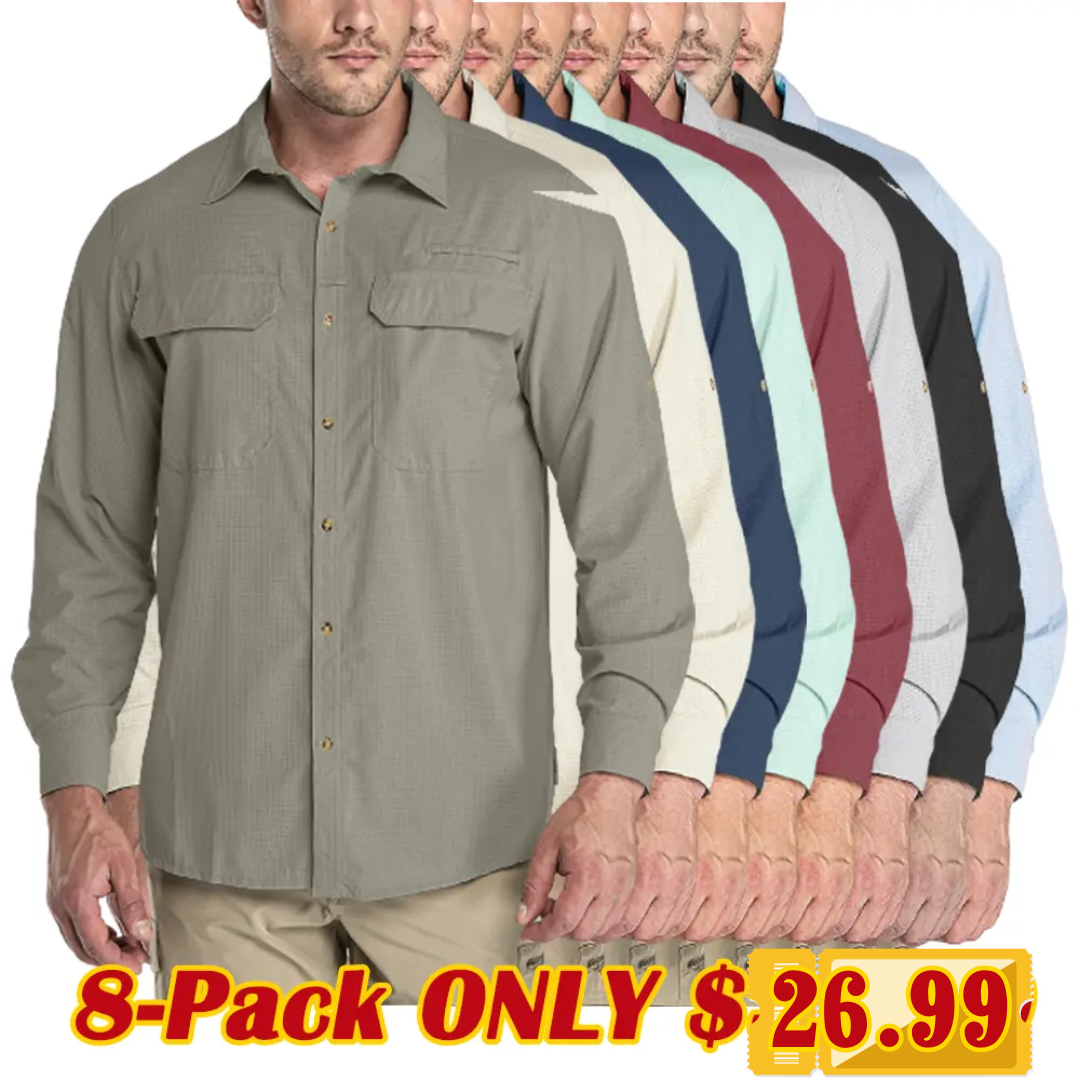 8-park Men's Long Sleeve Sun Protection Shirt UPF 50+ UV Quick Dry Cooling Fishing Shirts for Travel Safari Camping Hiking