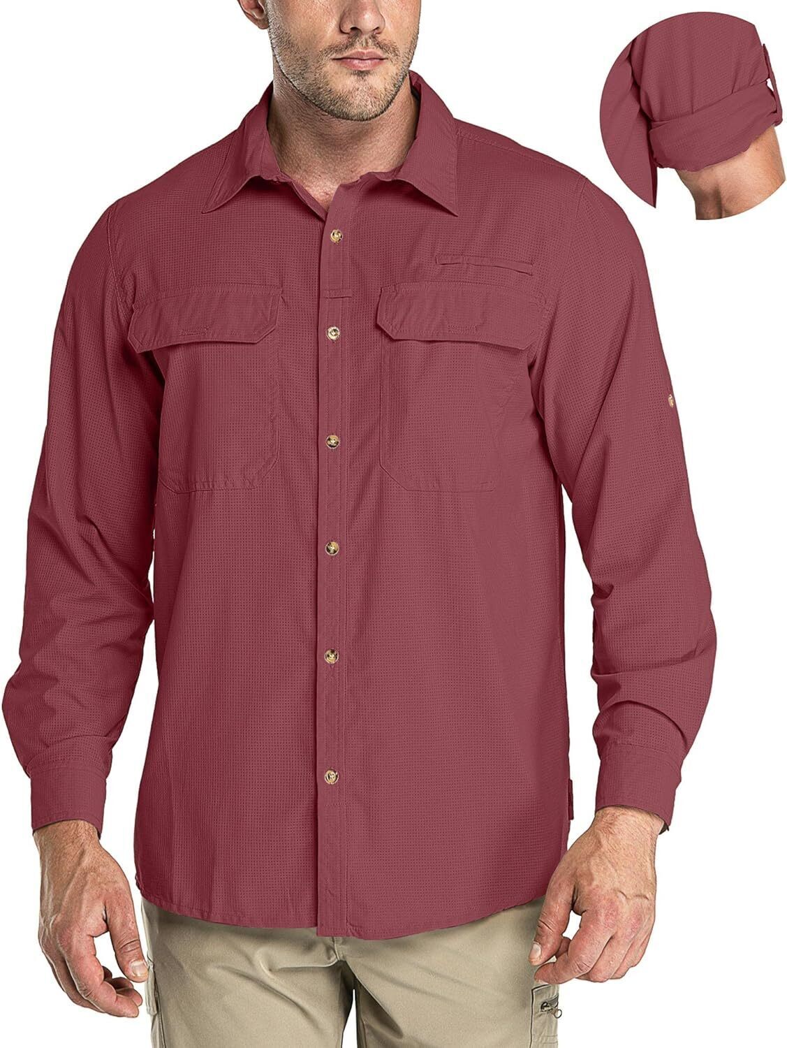 【Water-resistant & Wrinkle Free】The men's shirt is made of water resistant fabric and stain repelling materials to keep you dry and clean for outdoor hiking, fishing and other activities. Softer, stretchable and wrinkle free after washing. A good choice as travel clothing.