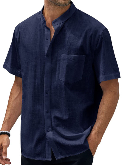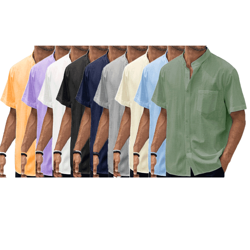 9-pack Men's Hawaiian Casual Beach Stand Collar Pocket Short Sleeves