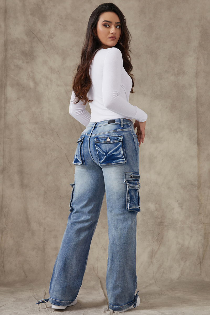 90s Vintage Flap Pocket Low Waist Cargo Jeans